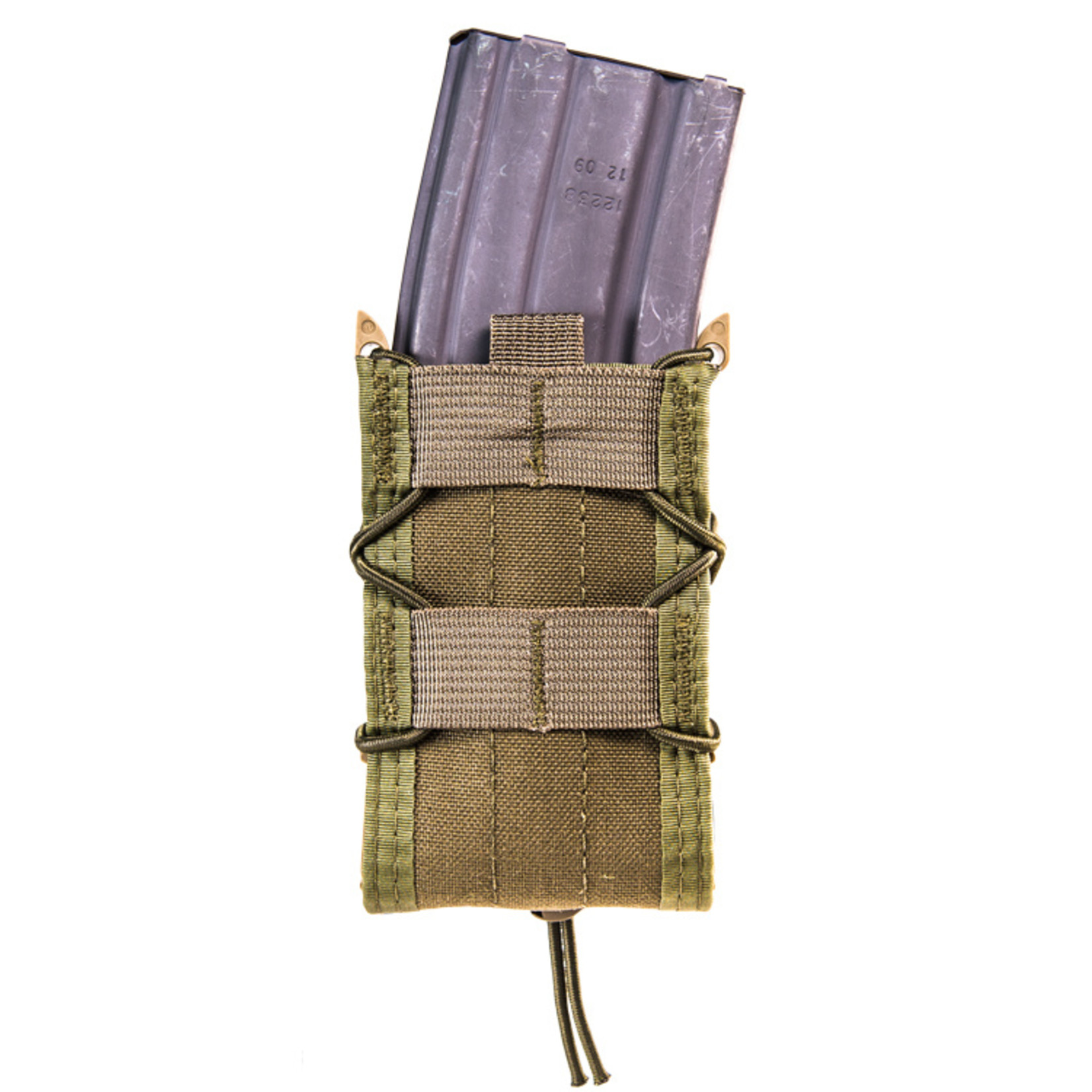 Cette poche unique utilise des côtés en polymère moulé par injectionavant et arrière en Cordura ™ et le choc cord de laçage  verrouiller n'importe quel chargeur de fusil en place. Les chargeurs USGIHKPMAGARCFALAK 30/40LR20 et M14 sont tous solidement maintenu et déployé facilement et silencieusement sur ​​demande